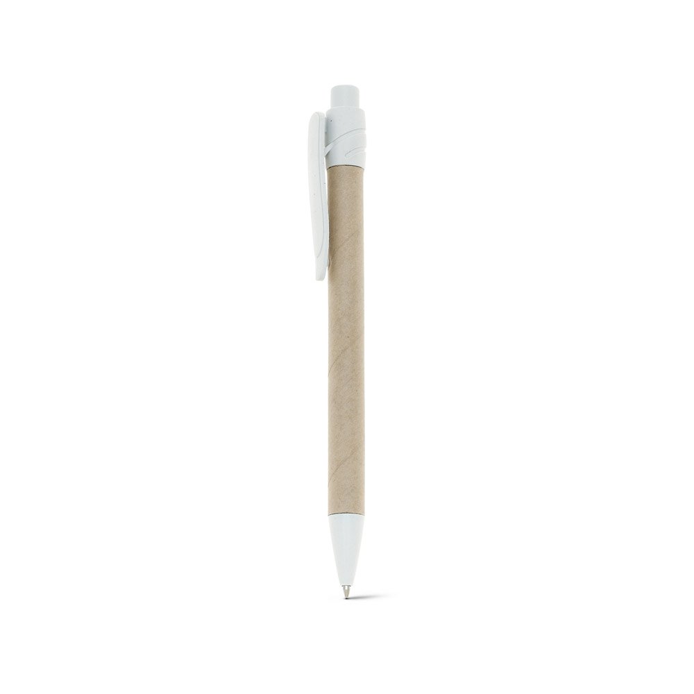 Esferográfica em papel kraft reciclado, com clipe de plástico. Escrita em azul até 1.5 km. A cor e o resultado da impressão nos materiais naturais pode variar entre produtos. ø10 x 140 mm